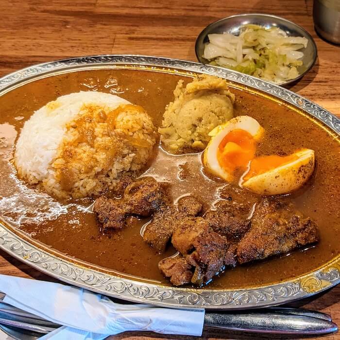 - スパイスカレー&BAR ドンカリ(蒲田):スパイスチキンカレー (+半熟玉子)